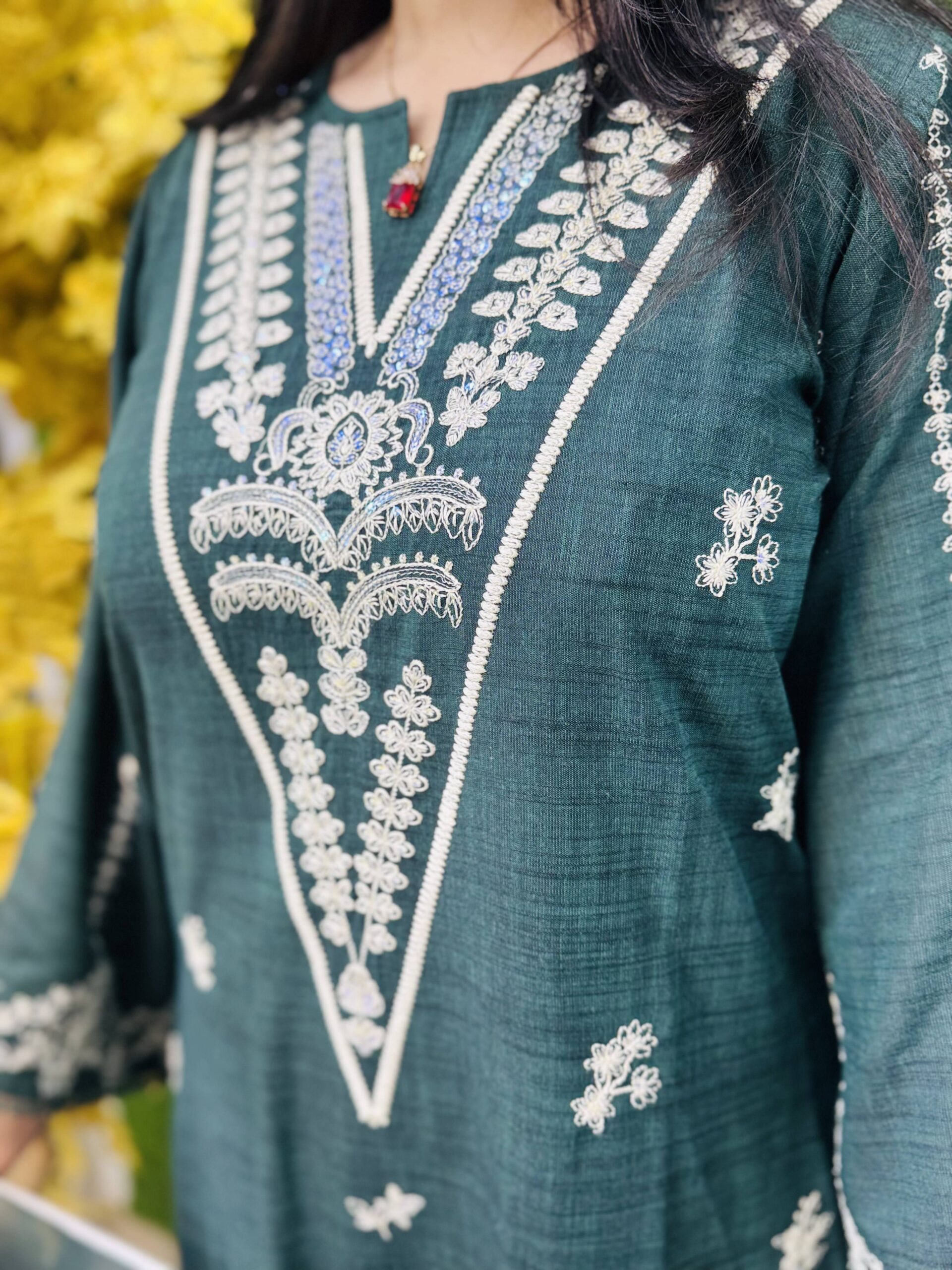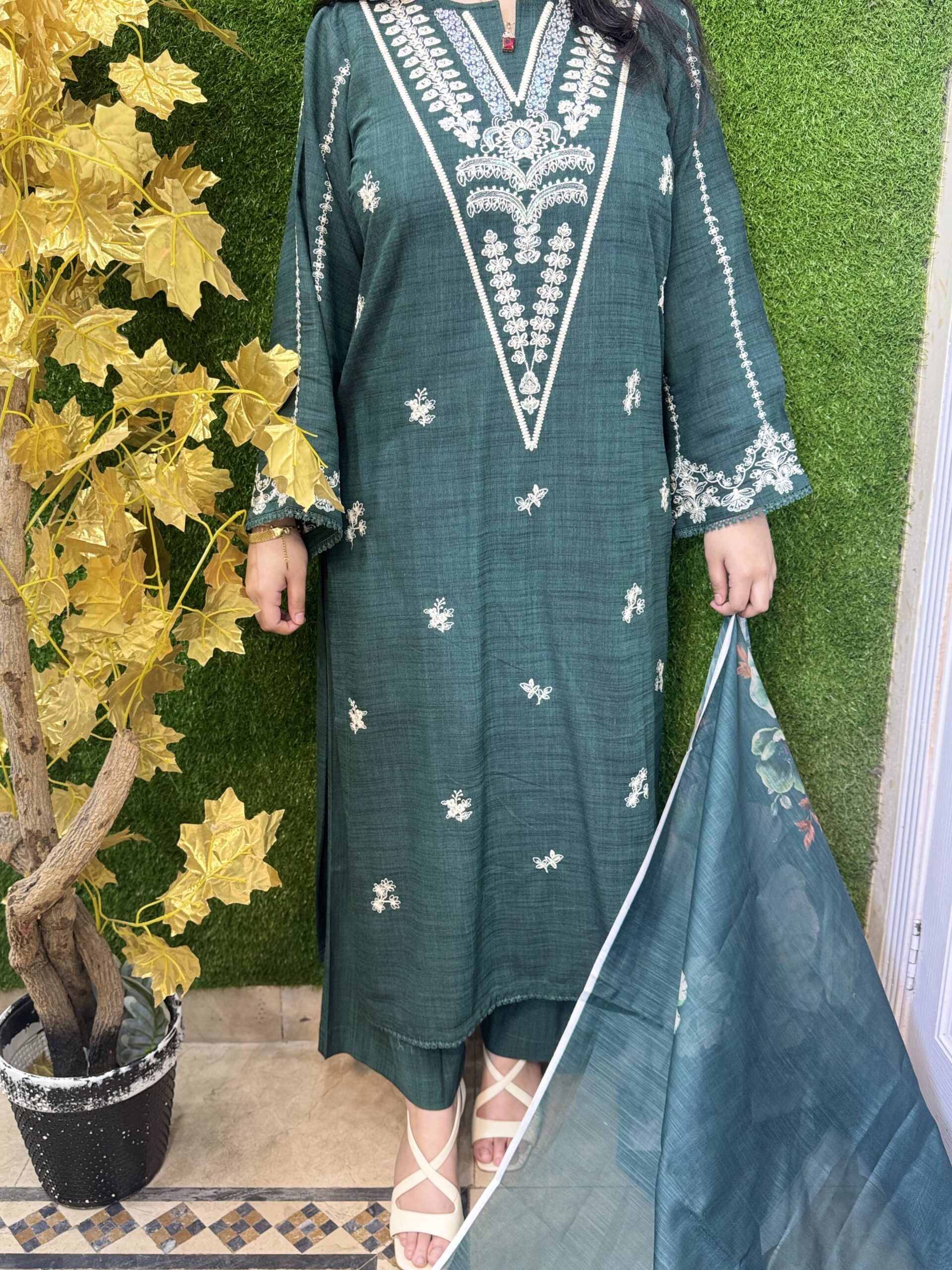 3 PC Embroidery Plain Khaddar Fabric
