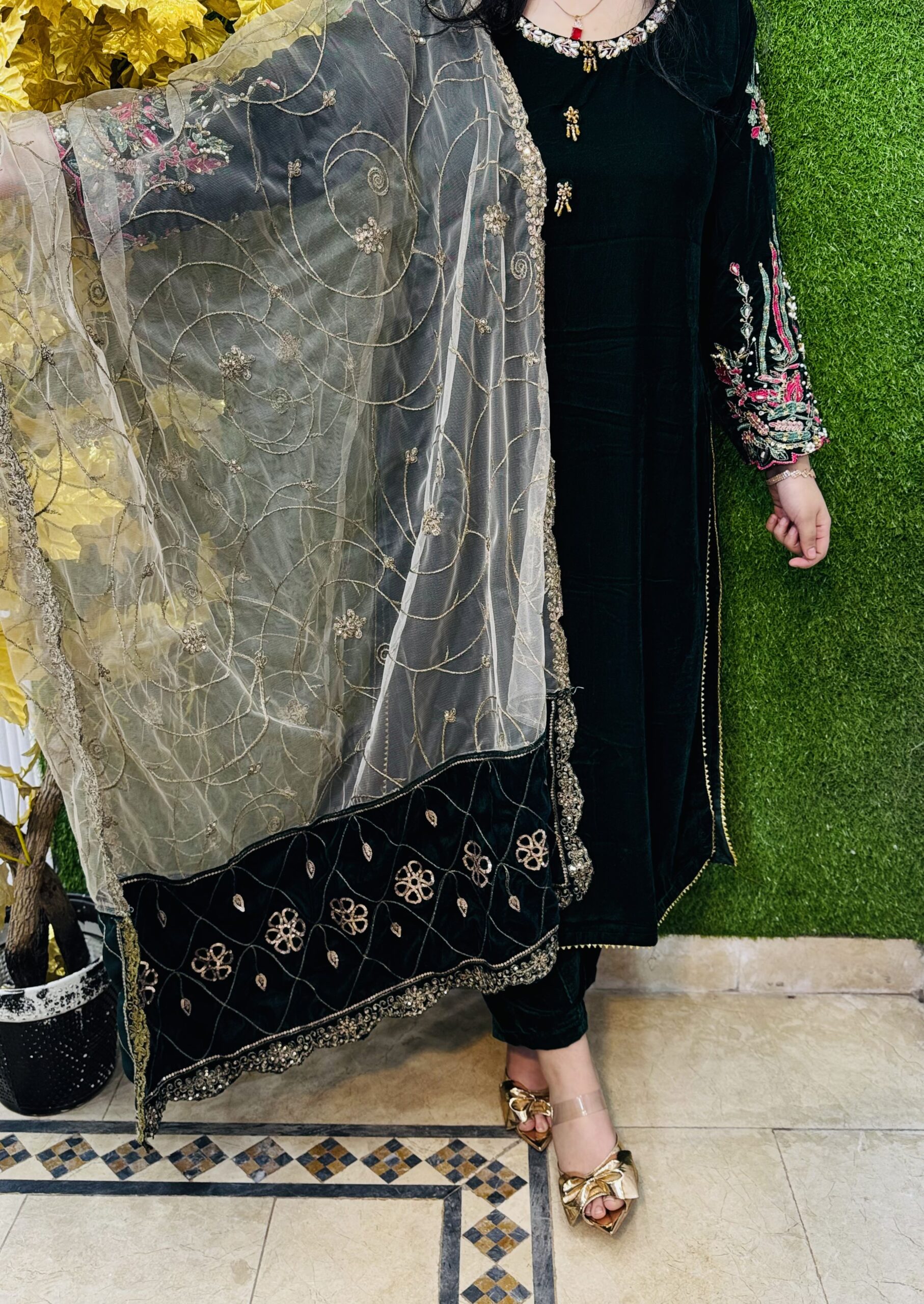 3 PC Embroidery Plain Velvet Fabric
