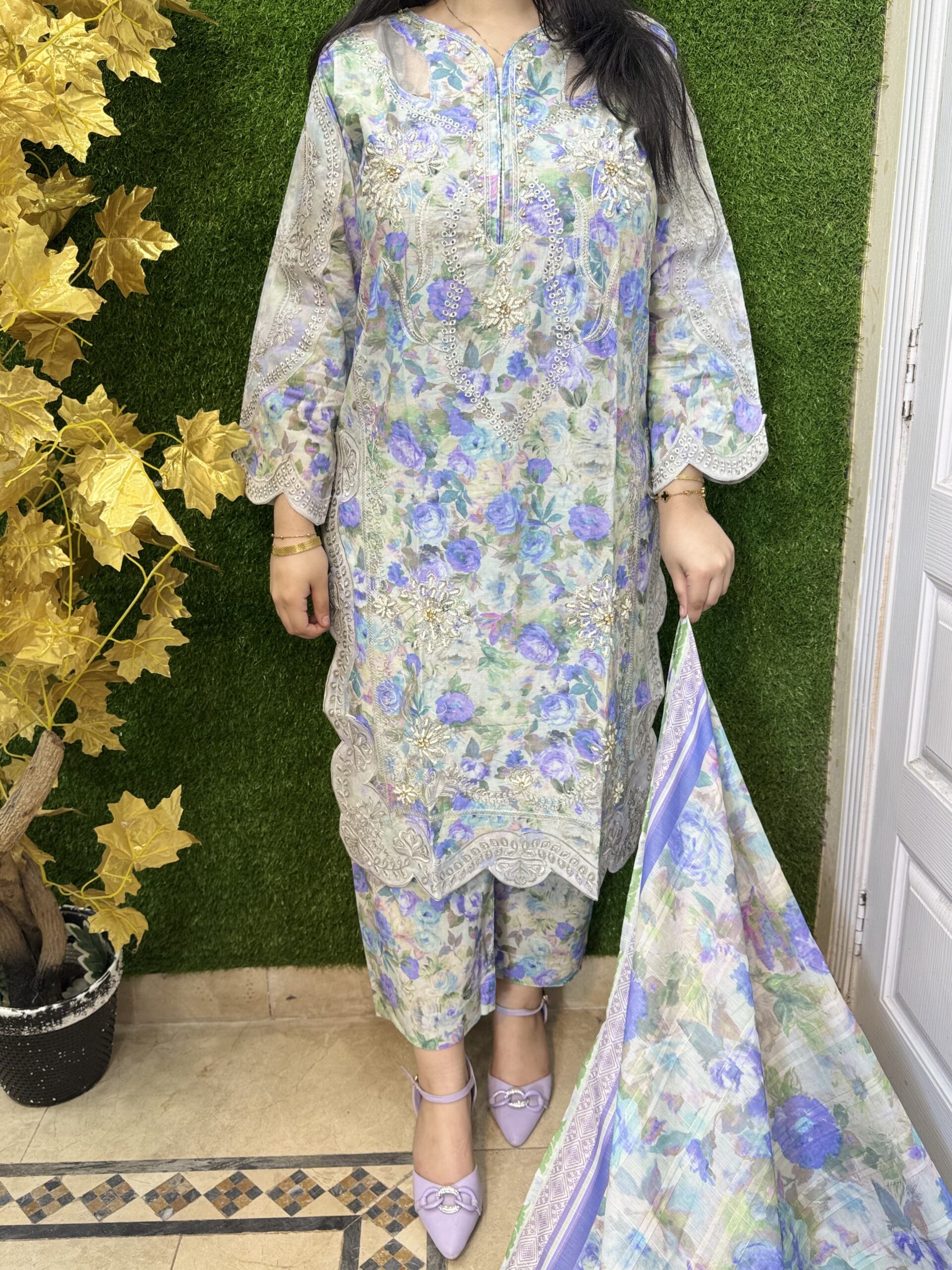 3 PC Embroidery Printed Cotton Lawn