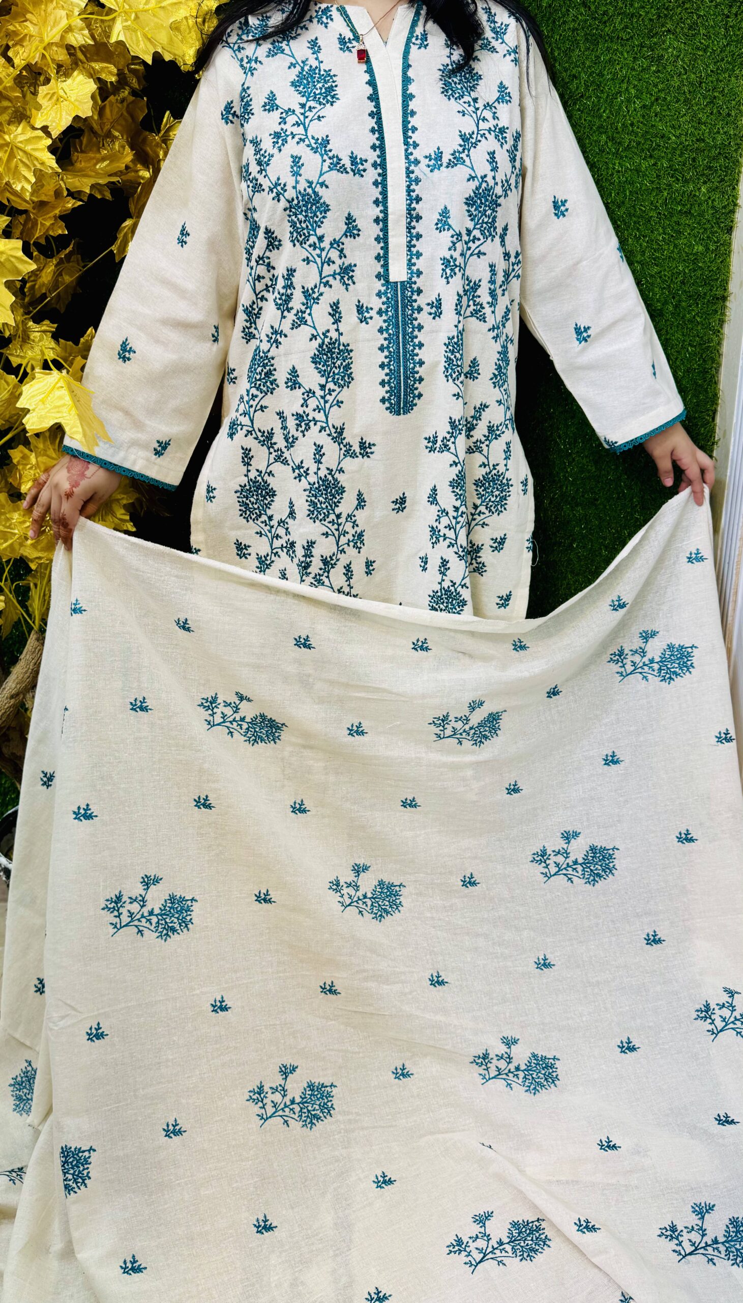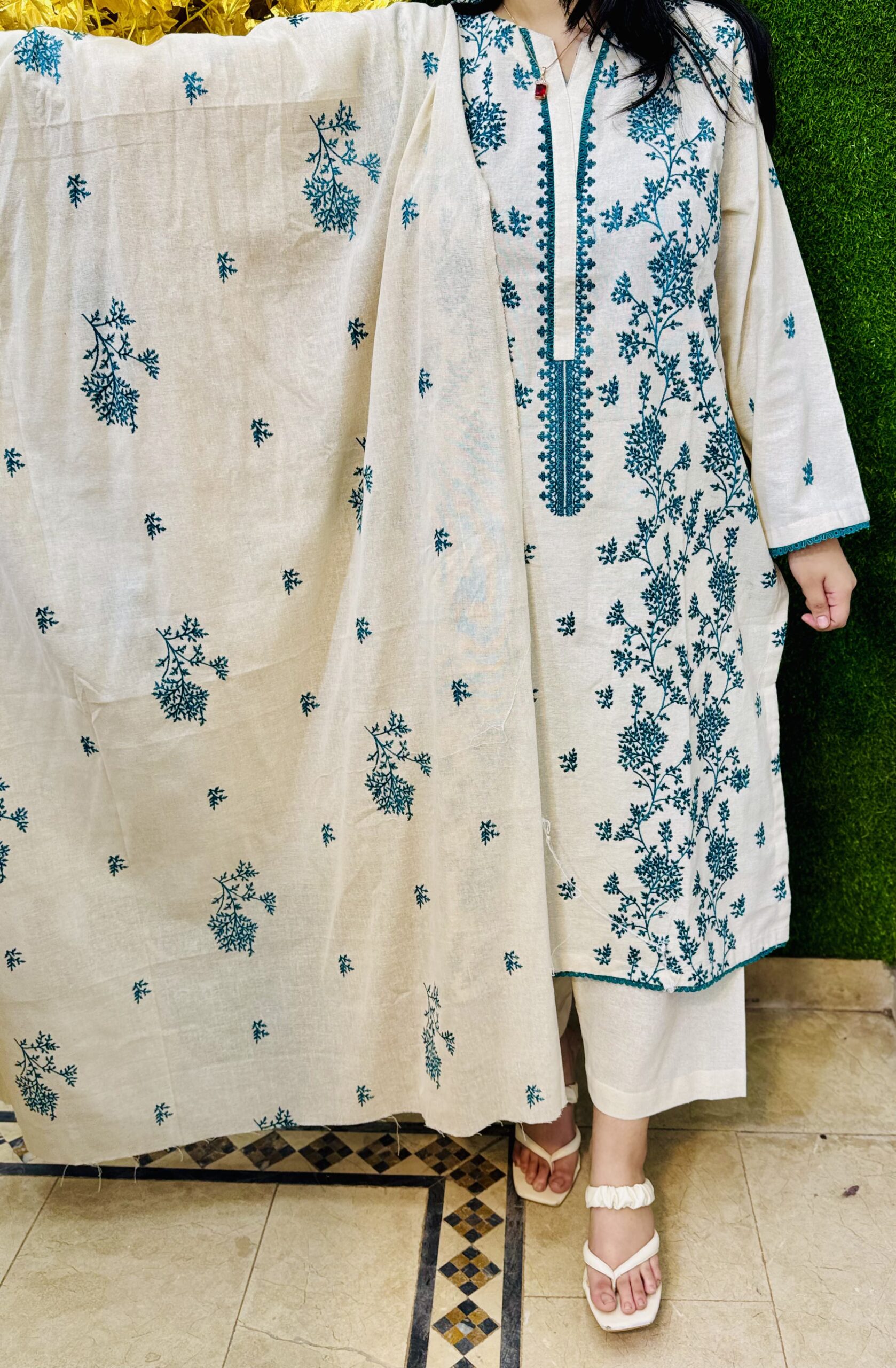 3 PC Embroidery Plain Cotton Lawn